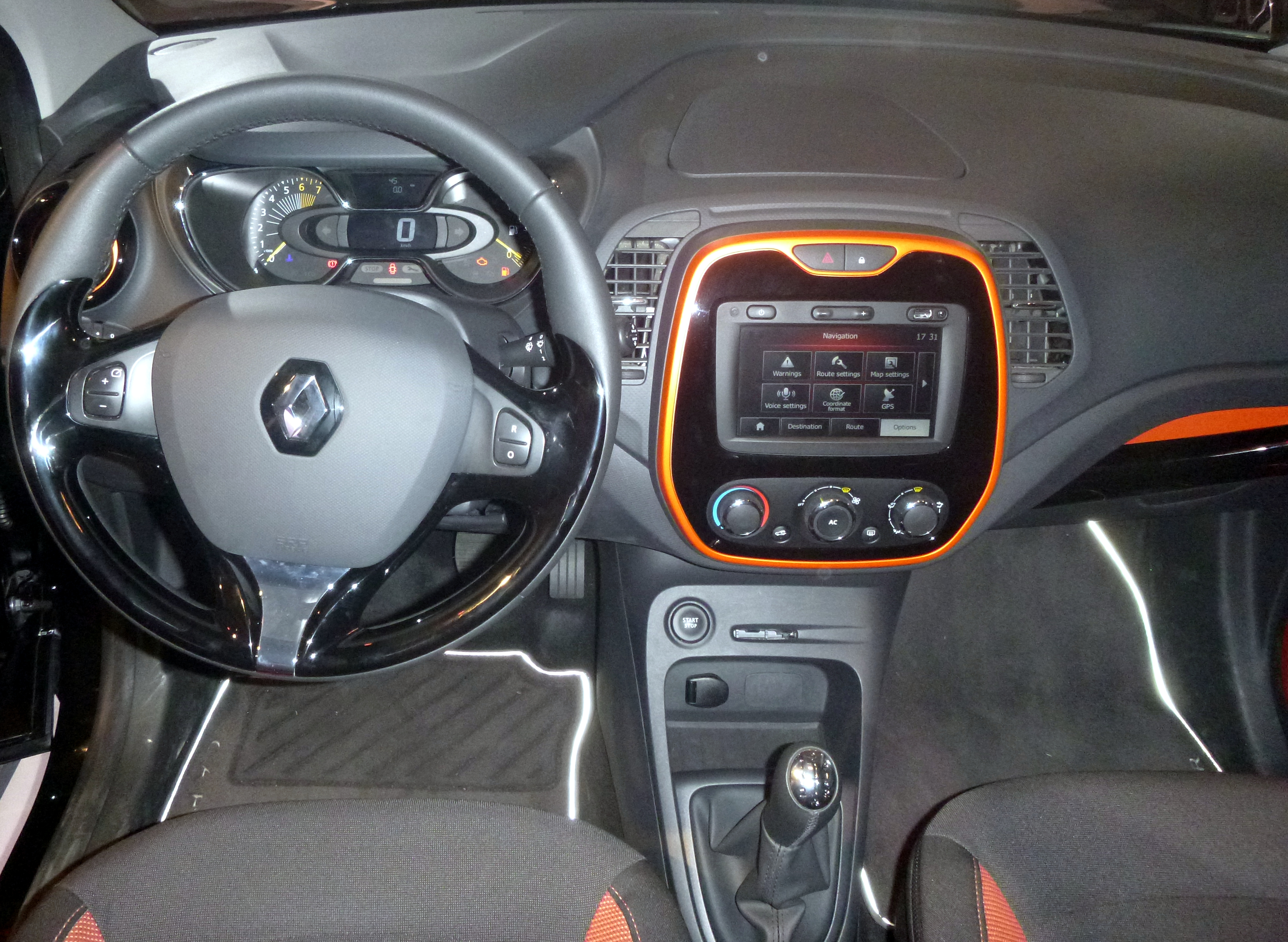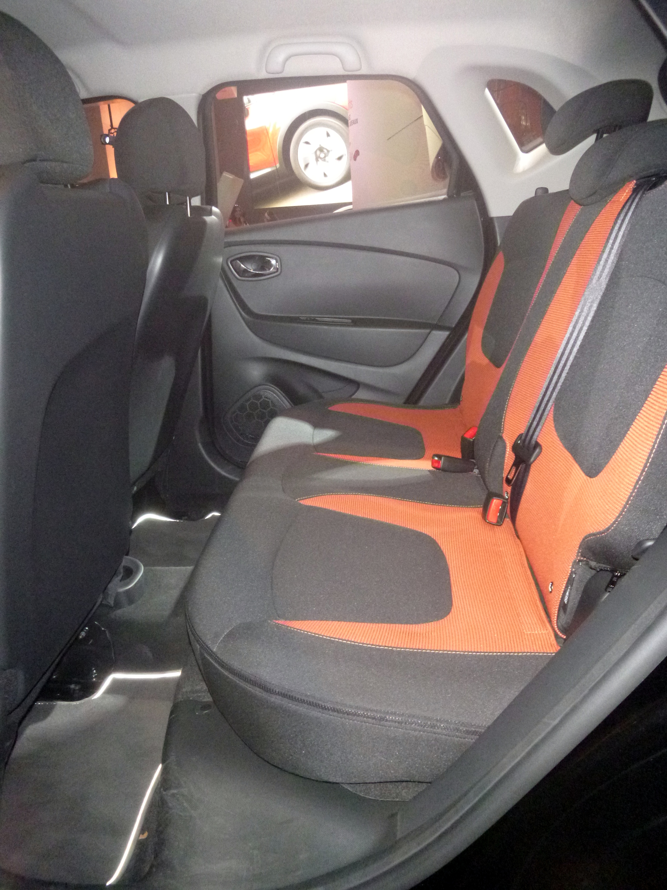 Por dentro, o Captur é visivelmente menor (leva 4 pessoas com conforto e 5 com certo aperto atrás) e melhor acabado do que o Duster brasileiro. Embora o acabamento não seja espetacular, com alguns materiais duros e alguns parafusos à mostra, ele está dentro do esperado para um veículo com as propostas do SUV compacto (ou crossover compacto).