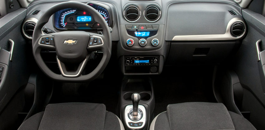 Por dentro, a linha 2014 do Agile tem um novo e bonito volante, com design mais esportivo, com a base achatada, e que integra controles do controlador da velocidade de cruzeiro (cruise control) do lado esquerdo e os comandos do rádio e do telefone do lado direito. O compacto conta ainda com novos mostradores, novos grafismos e molduras no painel, além de novos tecidos para os bancos e painéis das portas.
