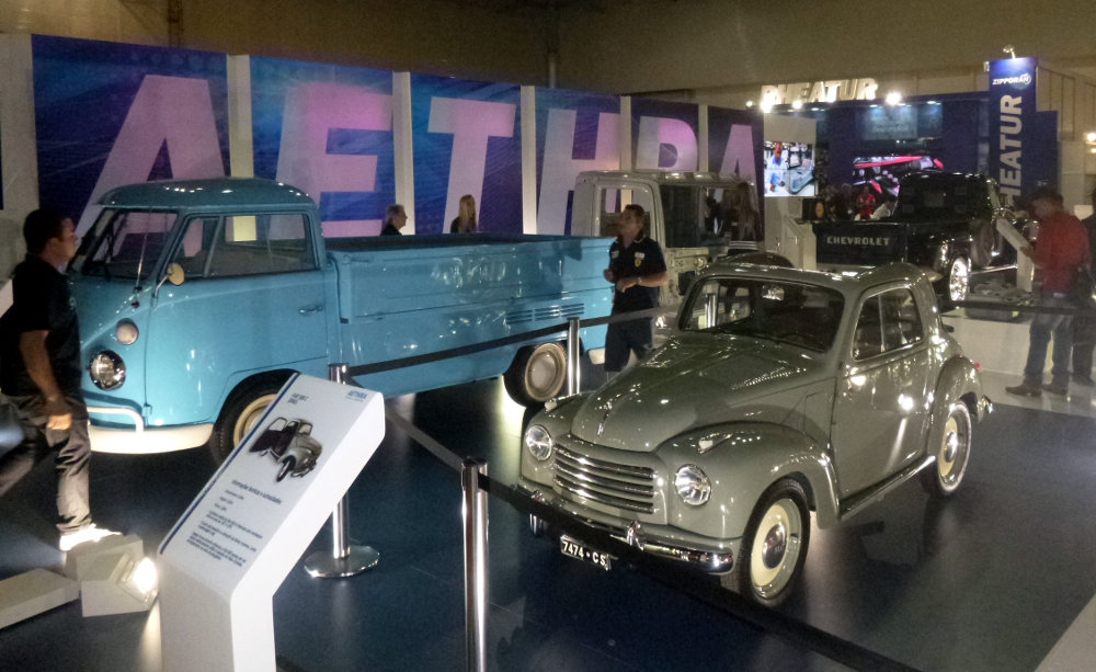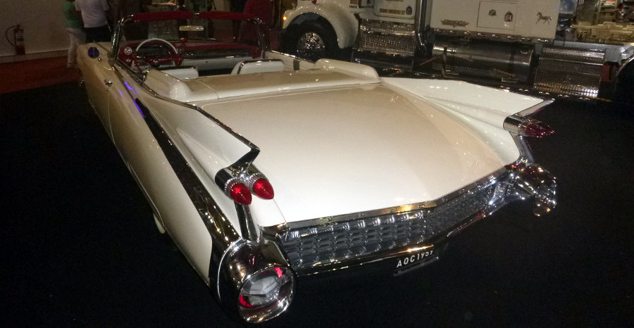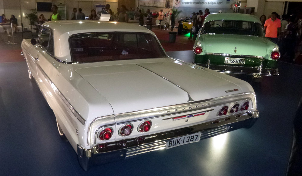 Se você gosta de carros antigos e bem cuidados, vale ir ao estande da Super Máquinas para olhar de perto e em detalhes um belíssimo exemplar do Cadillac Eldorado de 1959, conversível, com “rabão” de peixe. No mesmo estante estão dois caminhões imensos que merecem serem vistos! No espaço da Aethra tem também um Fiat 500 conversível de 1951 e um Chevrolet Impala SS de 1964.