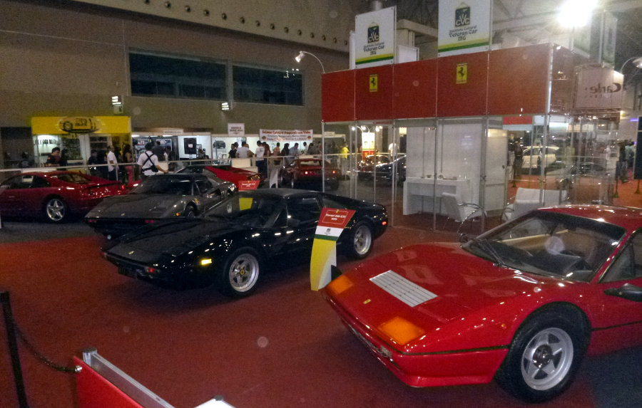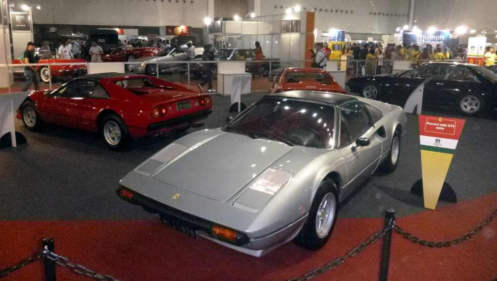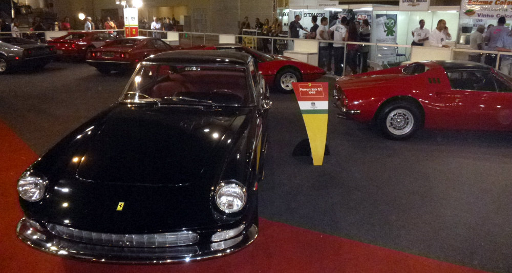 Falando no “mesmo”, mais uma vez temos os Hod Rods e os tunados, que não me agradam; os veículos de rali, os militares (o modelo Cascavel é legal), a exposição de autopeças, acessórios e serviços; e a presença “em massa” de carros antigos, como os do Veteran Car Club (representados, dessa vez, apenas por Ferraris, como 308 GTS, 355 GT, Dino 246 GTS, 330 GT, entre outros modelos – foto acima).