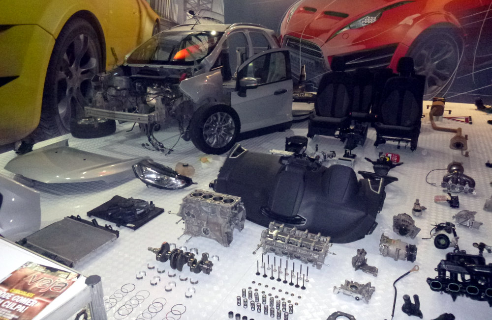 Vale a pena ir ao estande da Quatro Rodas para ver o Ford EcoSport totalmente desmontado depois do teste de 60.000 quilômetros. Embora não seja nada inédito, continua sendo muito interessante observar o carro em pedaços – literalmente.