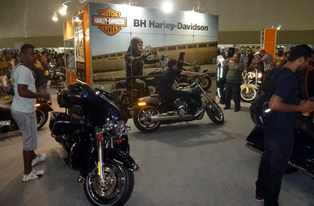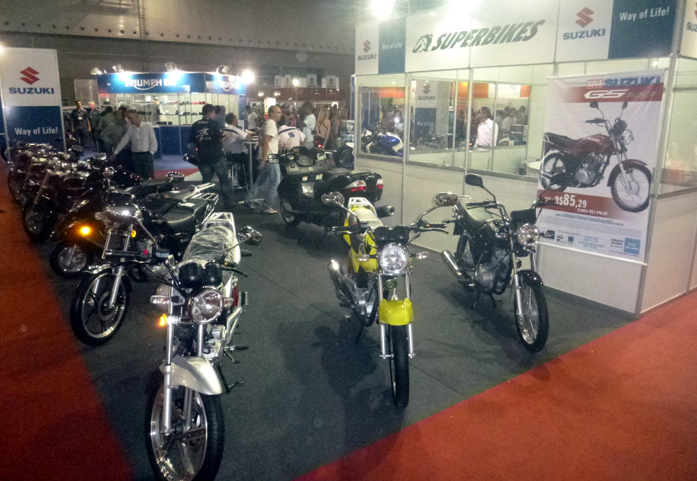 O visitante pode ver motos de diversas marcas, como Suzuki, Triumph e Harley-Davidson.