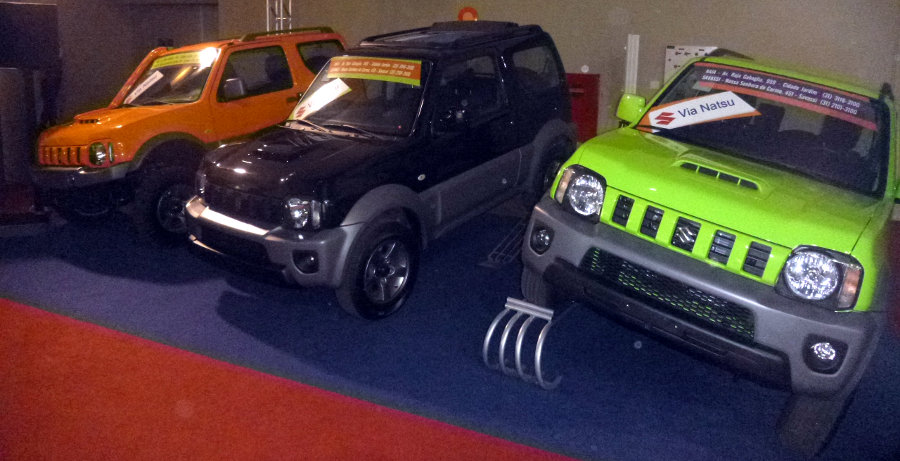 Apenas o Jimny está presente. Embora sejam três exemplares coloridos, eles estão num canto, quase escondidos. O estante da marca é o pior da feira, sem dúvida. Uma vergonha para a Suzuki…