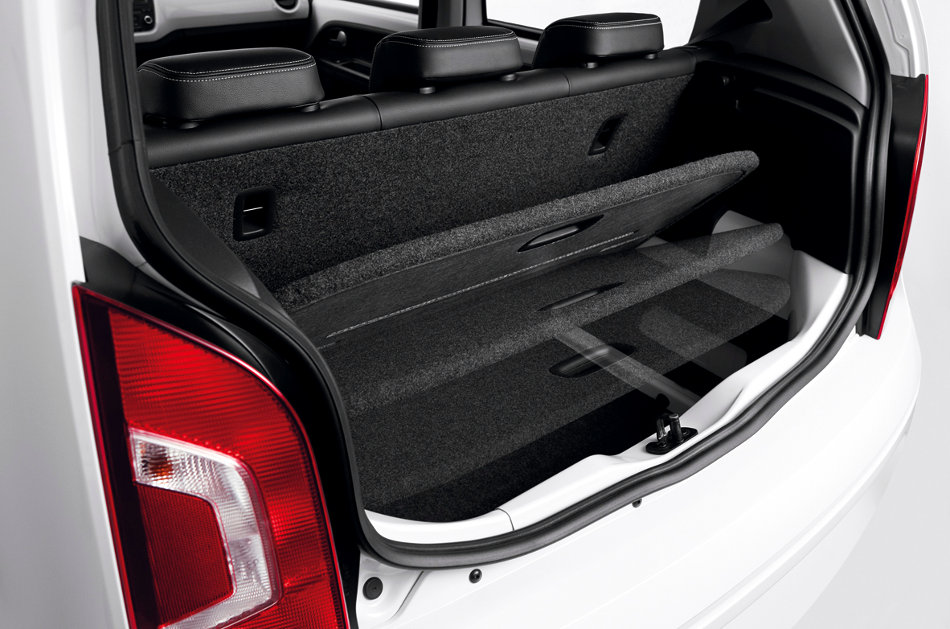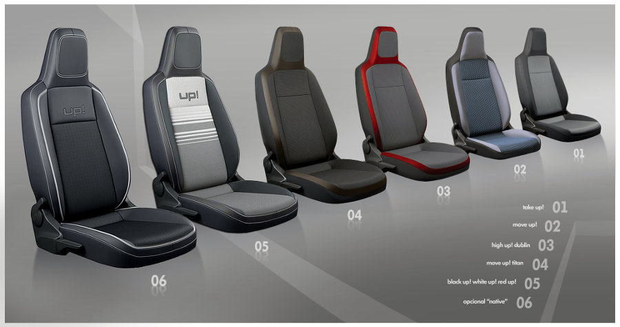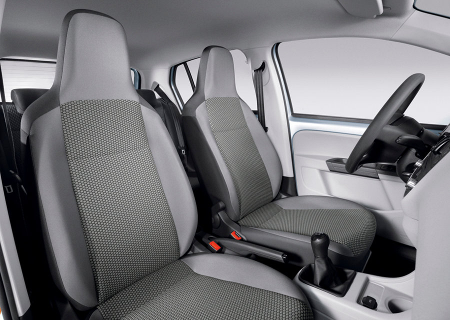 A versão de entrada do up! vem equipada, de série, com freios com sistema ABS com EBD e ESS (alerta de frenagem de emergência), airbag duplo frontal, paletas do limpador de p ara-brisas aerowischer, banco do motorista com ajuste milimétrico de altura, apoios de cabeça com ajuste de altura e cinto de três pontos laterias no banco traseiro, alerta sonoro de faróis acessos, alerta visual e sonoro de não utilização do cinto de segurança, bancos revestidos em tecido, cintos de segurança dianteiros com pré-tensionador e limitador de carga, console central com porta-copo; desembaçador, limpador e lavador do vidro traseiro; encosto do banco traseiro rebatível, espelhos retrovisores externos com comando interno manual, fixação da cadeirinha de criança com sistema ISOFIX / top tether, imobilizador eletrônico, para-choques na cor do veículo, para-sol com espelho para o passageiro, porta-copos traseiro, porta-objetos nas portas dianteiras, rodas de aço aro 13″ com pneus 165/80 R13 e calotas “nice”, tampa do porta-malas com abertura elétrica “push button”, tampa do tanque de combustível com chave, tomada 12V no console central, entre outros.