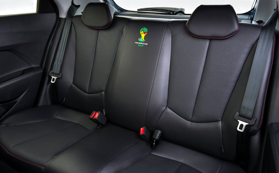 Já a Hyundai, como patrocinadora oficial da Copa do Mundo FIFA, cobrou caro e “vestiu” a linha HB20 para o evento no Brasil com três “uniformes” um pouco diferentes: Branco Polar, Prata Metal e Azul Sky. Jogando na dianteira temos a parte central do para-choque pintada da mesma cor da grade, faróis escurecidos e faróis de neblina. Nas laterais, destaque para os retrovisores na cor preta brilhante, para as rodas de liga leve diamantadas de 15 polegadas, para as maçanetas cromadas, para o acabamento preto na moldura das portas e para emblemas com o símbolo da Copa que “marcam” os para-lamas. Por dentro, os bancos são revestidos em couro perfurado com costura vermelha e emblema da Copa do Mundo bordado. Além do estofamento, os tapetes de carpete também são customizados e levam o logo oficial da Copa aplicado. As maçanetas são cromadas, assim como outros detalhes de acabamento do interior.