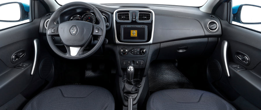 O bom espaço interno e o porta-malas com capacidade de 320 litros foram mantidos intactos, o que é muito bom. As mudanças da nova geração do Sandero se concentram nos novos materiais, acabamentos aperfeiçoados e novas cores e texturas, que melhoraram o interior. O painel também foi remodelado e conta com novo quadro de instrumentos, materiais mais agradáveis ao tato, novo voltante de três raios com melhor empunhadura (na versão Dynamique, ele vem com os comandos do piloto automático).