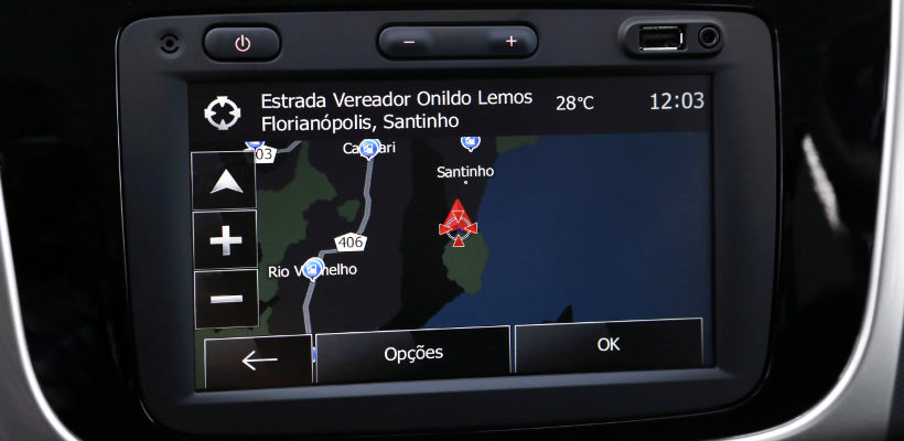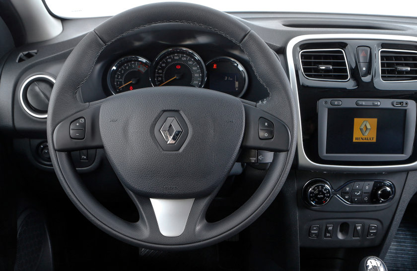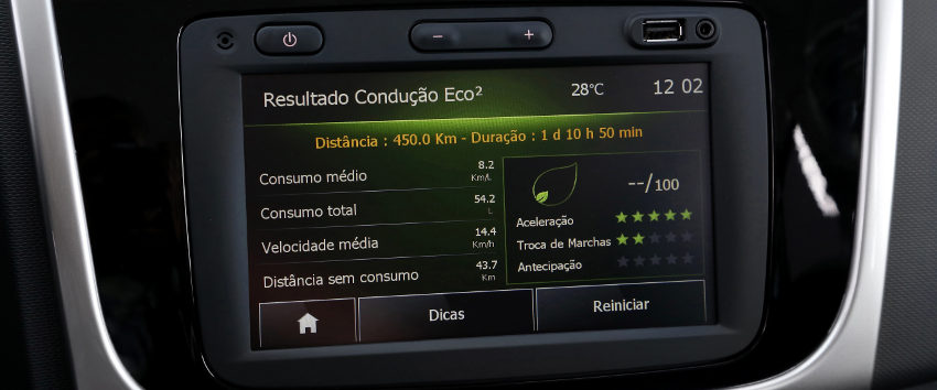 O novo Sandero conta também com o Media NAV 1.2. Com tela touchscreen de sete polegadas integrada ao painel, o Media Nav 1.2 dispõe das funções Eco-Coaching e Eco-Scoring, além de entradas auxiliar e USB, GPS, Bluetooth, rádio e visualização da temperatura externa e “pop-up” com informações do ar-condicionado automático. O sistema pode ser o operado pelo comando satélite localizado na coluna de direção, do lado direito – prático, mas inferior em termos de ergonomia aos comandos no volante.