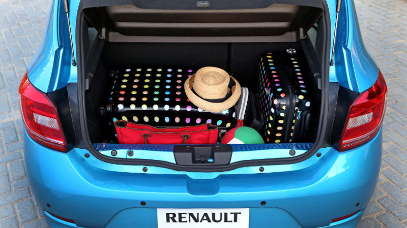 Uma novidade do modelo é o comando interno de abertura do porta-malas de bons 320 litros de capacidade. De série, o novo Sandero permite rebater o banco traseiro e a capacidade do porta-malas se eleva até 1.196 litros.