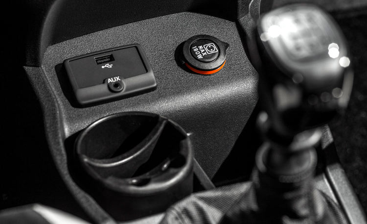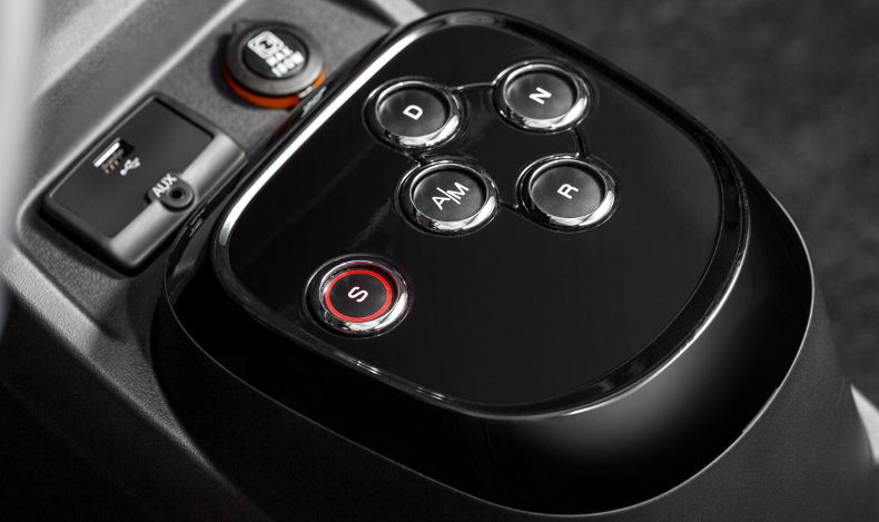 No console central, os cinco botões permitem fácil acionamento do novo câmbio: A/M (Automático/Manual), D (Drive), N (Neutro), R (Ré) e a tecla S (Sport), que aciona o modo de condução esportiva. Atrás do novo volante, duas borboletas (paddle shifts) permitem trocas de marchas manualmente das cinco velocidades mesmo quando o câmbio está na posição automática.