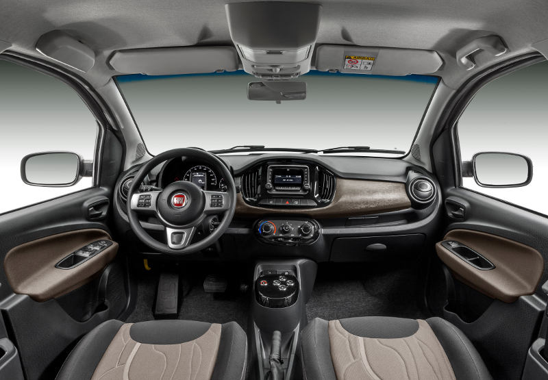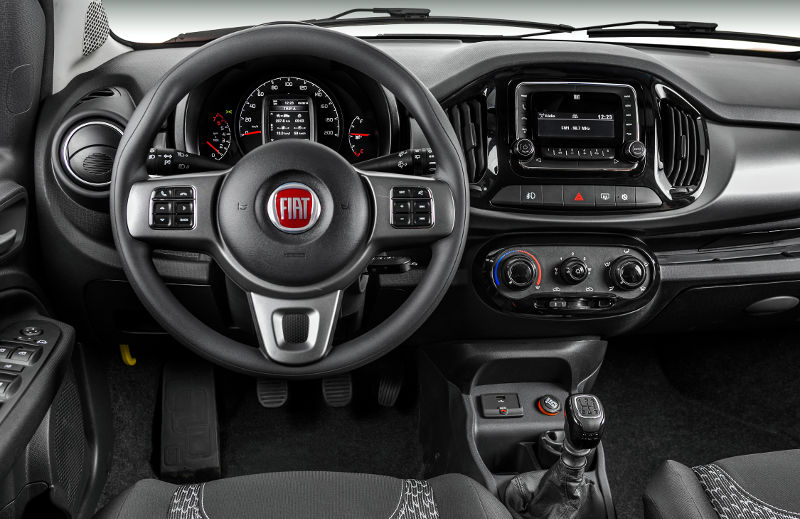 Entradas auxiliar, USB e tomada 12V foram reposicionadas no novo console central. No centro do painel, o equipamento de som foi valorizado com espaço maior, agora de 2DIN. Além disso, o Uno 2015 tem uma nova alavanca de câmbio e um novo volante multifuncional que pode trazer os comandos do rádio, as funções do computador de bordo e as duas borboletas do câmbio Dualogic – e também pode ser regulável em altura.