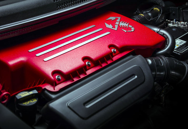 São 16 exclusivos “detalhes Abarth” espalhados pela carroceria e também no interior: na dianteira, além do novo para-choque e dos exclusivos faróis, o logotipo do escorpião marca sua presença. O escorpião pode ser encontrado ainda nas laterais, na tampa do porta-malas, no volante de direção e até no motor (foto acima).