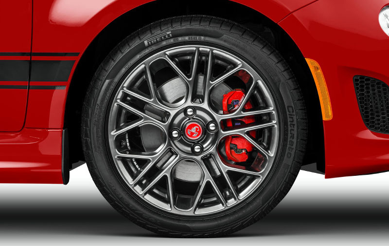 Para suportar o desempenho adicional dos 60 cv (em relação ao 500 Cabrio 1.4 16V 2015), o Abarth teve suas suspensões completamente revistas e adotam molas, amortecedores e barras estabilizadoras redimensionadas para maior estabilidade. Os discos de freios foram redimensionados e têm pinças vermelhas, maiores e com poder de frenagem realçado.