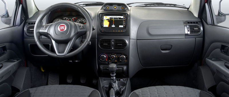 Curiosamente, no Doblò, fica a impressão de que a central multimídia tem uma antiga tela de tubo de imagem (aquelas tvs grandonas do passado) devido ao formado do painel. Veja nas fotos. Pelo menos a multivan é a que conta com a melhor posição das saídas de ar centrais do painel, que são muito baixas na dupla Idea e Weekend (e na Strada também).