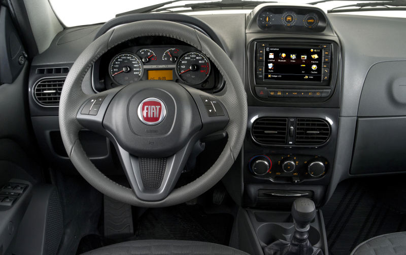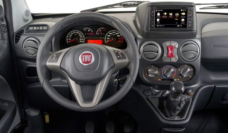 Curiosamente, no Doblò, fica a impressão de que a central multimídia tem uma antiga tela de tubo de imagem (aquelas tvs grandonas do passado) devido ao formado do painel. Veja nas fotos. Pelo menos a multivan é a que conta com a melhor posição das saídas de ar centrais do painel, que são muito baixas na dupla Idea e Weekend (e na Strada também).