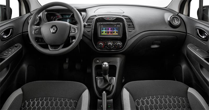 A Renault destaca alguns equipamentos como “especiais” para o Captur. Além dos retrovisores laterais serem rebatíveis eletricamente, o modelo tem, como esperado, a central multimídia MEDIA Nav, disponível em todas as suas versões.