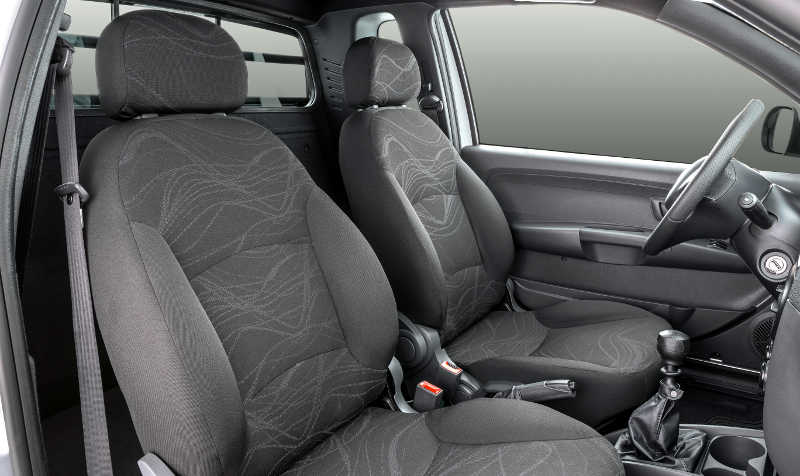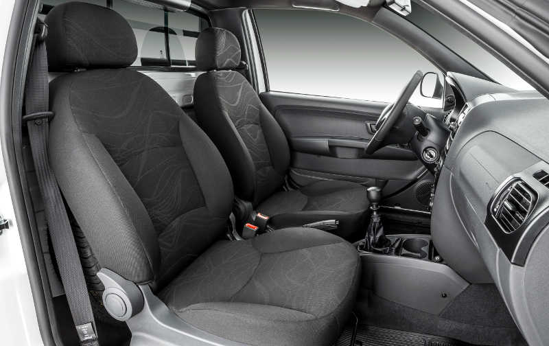 Opcionais: capota marítima, porta-óculos, soleira das portas com inscrição “Hard Working”, faróis de neblina, vidros e travas elétricas, janelas traseiras corrediças, sensores de estacionamento traseiro, rádio Connect com CD player, USB e Bluetooth, calotas integrais e rodas de liga leve aro 14” para cabine dupla.