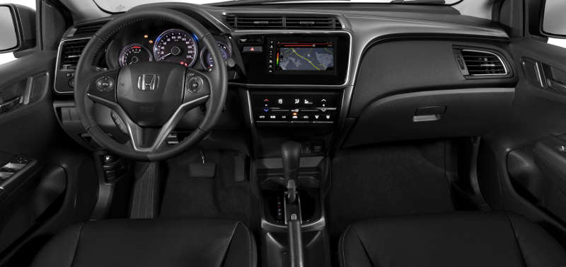 Painel do Honda City EXL 2018 com destaque para o GPS na tela do centro