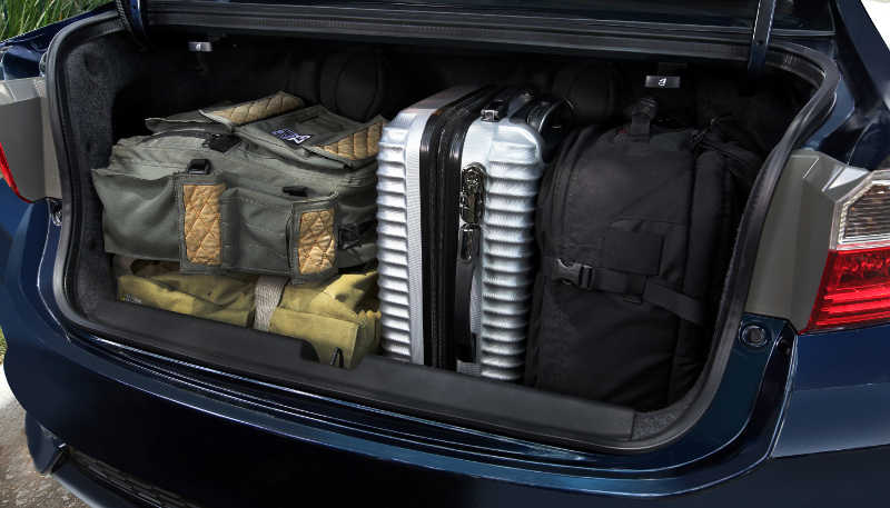 O espaço do City 2018 não mudou, tanto internamente, quanto para bagagem. Cinco pessoas viajam com conforto (apenas os ombros podem ficar mais apertados atrás), levando ótimos 536 litros no porta-malas (485 litros acima do assoalho + 51 litros abaixo).