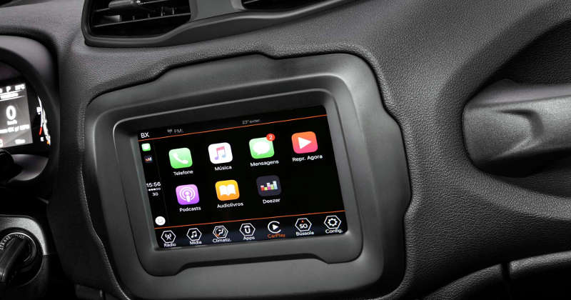 O Renegade Sport 2020 recebeu alarme perimétrico de série e um novo pacote opcional chamado de Uconnect. Ele é formado por central multimídia de 7″ compatível com Android Auto e Apple CarPlay, ar-condicionado digital dual zone (com opção de controle na tela) e sensores traseiros de estacionamento. Tudo por R$ 4 mil.