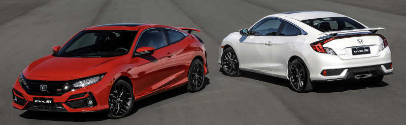 O Civic Si 2020 é comercializado no Brasil em versão única, cupê de duas portas, com três opções de cores: Platinum White, Crystal Black e Rallye Red.