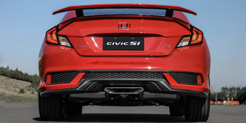 Na traseira, o Si mantém o elevado aerofólio, que, embora não atrapalhe a visual, não me agrada tanto (me parece um pouco exagerado – penso que a Honda poderia ter conseguido uma solução de design ainda mais atraente em relação a ele) e barra de LED horizontal, que acompanha toda extensão da traseira.