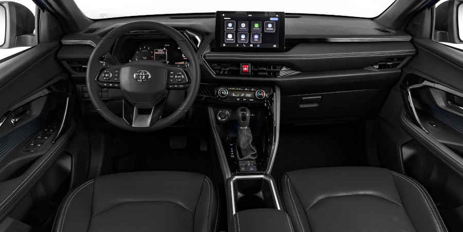 - Toyota Safety Sense (TSS): Controle de Cruzeiro Adaptativo (ACC), Sistema de Alerta de Mudança de Faixa (LKA) com Assistente de Permanência de Faixa (LKC), Sistema de Pré-Colisão Frontal (PCS) e Farol Alto Automático (AHB)